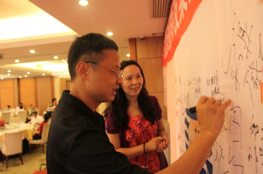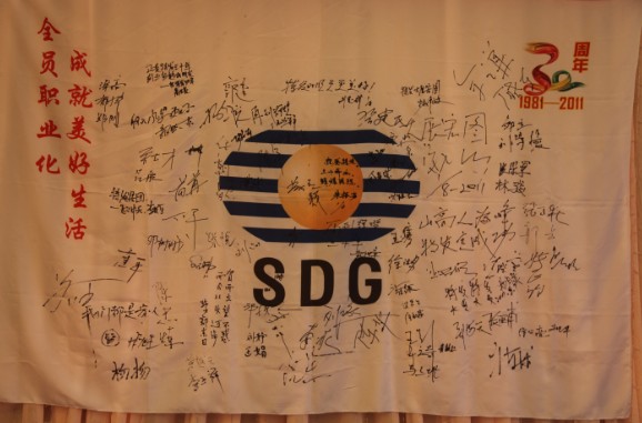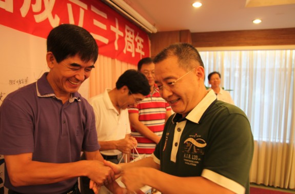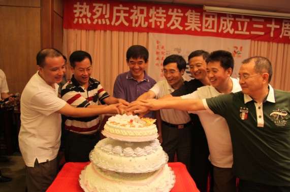 接著,劉愛群董事長發(fā)表了熱情洋溢的祝酒辭。他首先回顧了特發(fā)集團1981年8月1日成立的歷史時刻,叮囑大家記住這個特殊的日子。他說:“我們特發(fā)人用自己的方式來慶祝集團成立三十周年,我們的生日很有特色。從去年開始,我們安排了一系列文化體育活動,用一年的時間來慶祝特發(fā)30歲生日。去年11月,集團在2010年(第四屆)深圳企業(yè)文化節(jié)活動中,以第一的排名獲深圳企業(yè)文化建設(shè)十佳單位榮譽稱號;今年5月,集團在2011年(第八屆)廣東省企業(yè)文化建設(shè)論壇活動中,以第一的排名獲廣東省企業(yè)文化建設(shè)十佳單位榮譽稱號。今年3月,為慶祝特發(fā)集團成立30周年而編著的《生機——一家傳統(tǒng)國企轉(zhuǎn)型密碼》一書,由廣東省出版集團花城出版社出版,新華書店發(fā)行;6月,集團舉辦特發(fā)三十年迎大運羽毛球邀請賽,感謝社會各界30年來對特發(fā)改革發(fā)展的關(guān)心和支持”。“今天我們又邀請了公司董事、監(jiān)事,共同慶祝特發(fā)成立三十周年,因為我們是一家人,對特發(fā)有一樣的期望和祝福”。他還歷數(shù)了下午大家在司旗上留下的生日感言,并說:“我寫的祝福語是‘特發(fā)的明天更美好’。我提議大家舉杯,為特發(fā)的明天更美好干杯!”全場響起了歡快的笑聲和掌聲,大家紛紛舉杯、祝福,表達特發(fā)人對事業(yè)的熱愛和對明天的美好期盼。