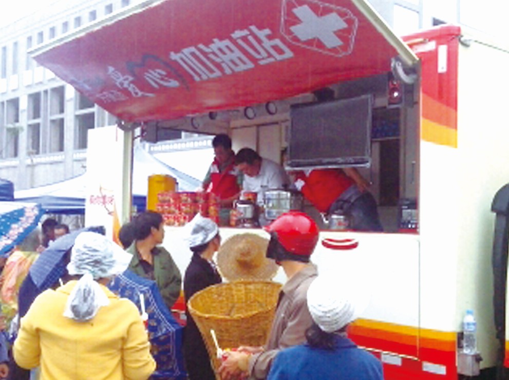 沒有休息,沒有喊苦喊累,救援小隊在經(jīng)過長達9個小時的急行軍后,立刻投入到任務(wù)之中。物資裝卸中不乏重量級設(shè)備,令人精疲力盡;道路的疏通指揮也因大批沒有救災(zāi)經(jīng)驗志愿者的涌入而令人聲嘶力竭;為當?shù)財?shù)百高中生搭設(shè)帳篷也不是一件輕松容易的活兒;連平時在家不怎么做飯的佘仕強等人在震后蘆山縣卻成了掌勺師傅。在災(zāi)難中,人與人特別需要互相支持,救援小隊爆發(fā)出最大的潛力,竭盡所能地幫助災(zāi)區(qū)同胞。