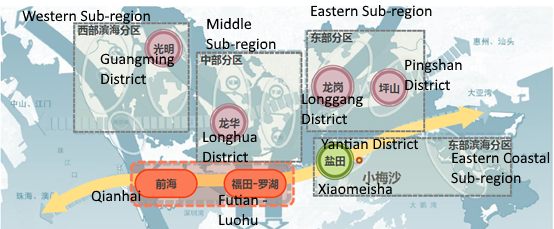 (1)Scope of overall planning research: the research covers two parts: the coastal zone and the land area of Xiaomeisha , totaling about 383 hectares, of which the coastal zone extends about 157 hectares and the land area 226 hectares. It is expected to provide overall planning idea and spatial structure for both parts and detailed planning for the coastal zone.