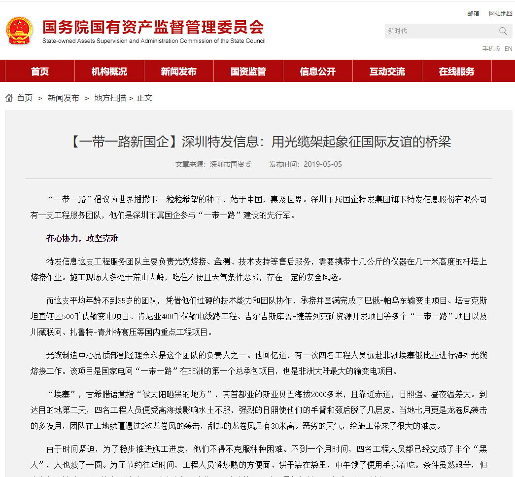 為一帶一路做貢獻(xiàn)!國(guó)務(wù)院國(guó)資委官網(wǎng)報(bào)道特發(fā)集團(tuán)啦!