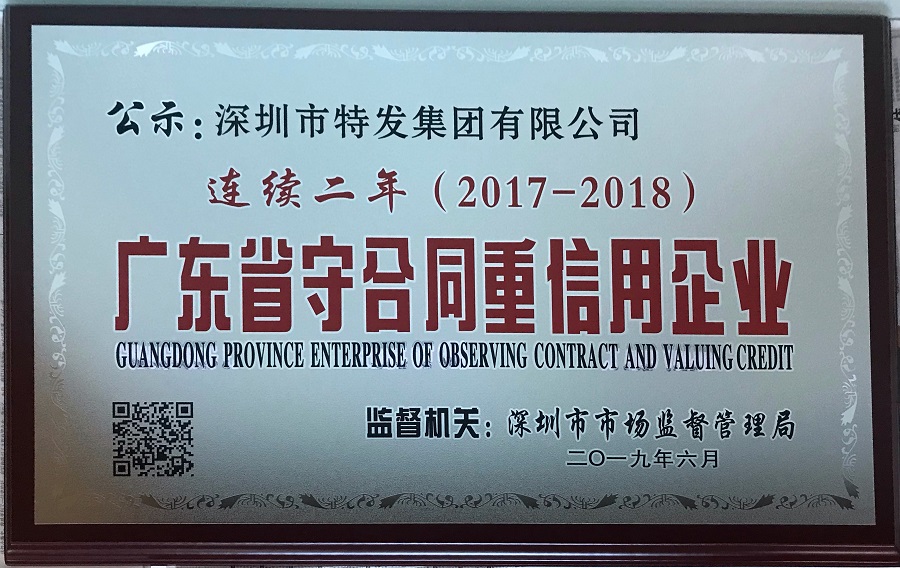 特發(fā)集團連續(xù)兩年榮獲廣東省“守合同重信用企業(yè)”稱號