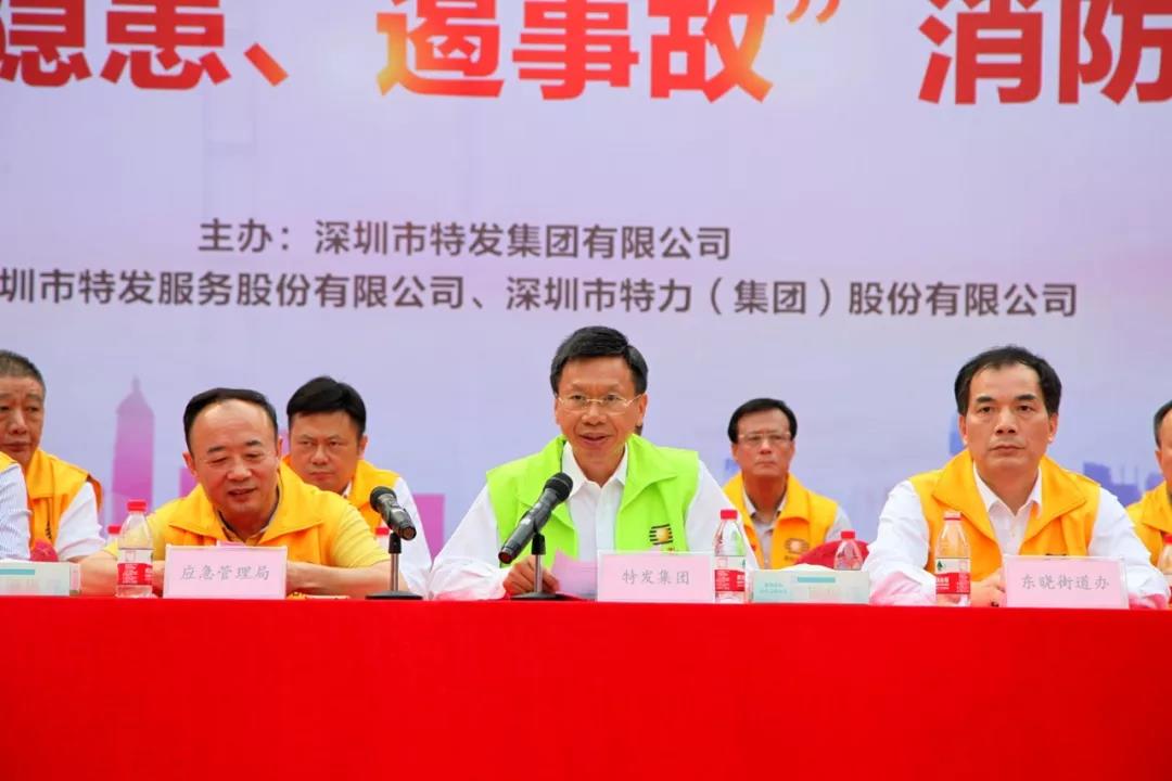 最后,東曉街道辦及羅湖區(qū)應(yīng)急管理局領(lǐng)導(dǎo)分別發(fā)言,均對此次消防演習(xí)表示肯定。高天亮總裁作總結(jié)發(fā)言,他首先對各政府單位的大力支持以及參演人員的密切配合表示感謝。本次演練是今年集團(tuán)組織開展的最大規(guī)模聯(lián)合應(yīng)急救援演練,是為了進(jìn)一步檢驗(yàn)集團(tuán)及各企業(yè)應(yīng)急預(yù)案,提升應(yīng)對突發(fā)事件的快速反應(yīng)、應(yīng)急處置和協(xié)同助戰(zhàn)能力而舉行的。通過特發(fā)服務(wù)、特力集團(tuán)的周密安排,各參演企業(yè)和人員進(jìn)一步熟悉了應(yīng)急救援流程及方法,完善了集團(tuán)內(nèi)應(yīng)急救援體系和應(yīng)急預(yù)案銜接內(nèi)容,同時(shí)也積累了應(yīng)對突發(fā)事件的實(shí)戰(zhàn)經(jīng)驗(yàn),達(dá)到了預(yù)期的目的,取得了圓滿成功。他希望各企業(yè)以本次演練為契機(jī),認(rèn)真總結(jié)經(jīng)驗(yàn),及時(shí)發(fā)現(xiàn)問題和不足,全面改進(jìn)與完善,在日常工作中完善本單位得救援應(yīng)急預(yù)案,進(jìn)一步加強(qiáng)應(yīng)急救援培訓(xùn),尤其是對員工進(jìn)行應(yīng)急救援和防災(zāi)自救的知識(shí)培訓(xùn),提高全員應(yīng)急救援水平,共筑安全、共創(chuàng)平安。
