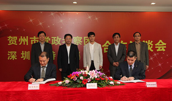 會議還舉行了簡短的框架性合作協(xié)議簽訂儀式。賀州市委常委、常務副市長潘志金代表賀州市政府與特發(fā)集團代表施長躍總經(jīng)理在合作協(xié)議上簽字。會議在熱烈的掌聲和相互祝賀中圓滿結(jié)束。