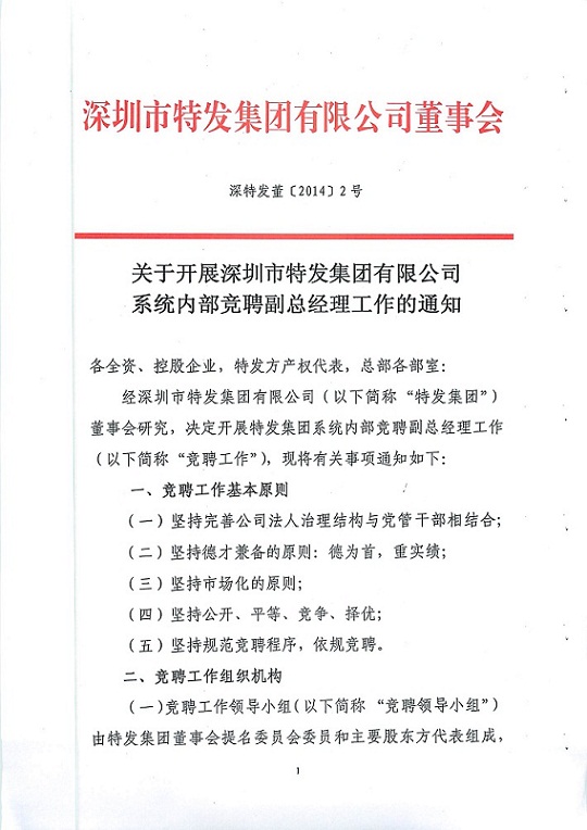 關(guān)于開(kāi)展深圳市特發(fā)集團(tuán)有限公司系統(tǒng)內(nèi)部競(jìng)聘副總經(jīng)理工作的通知